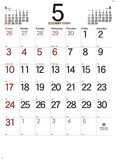 A2 シンプルスケジュールは暦情報サイト連動商品。Webサイトに繋がる二次元コードがつきました。