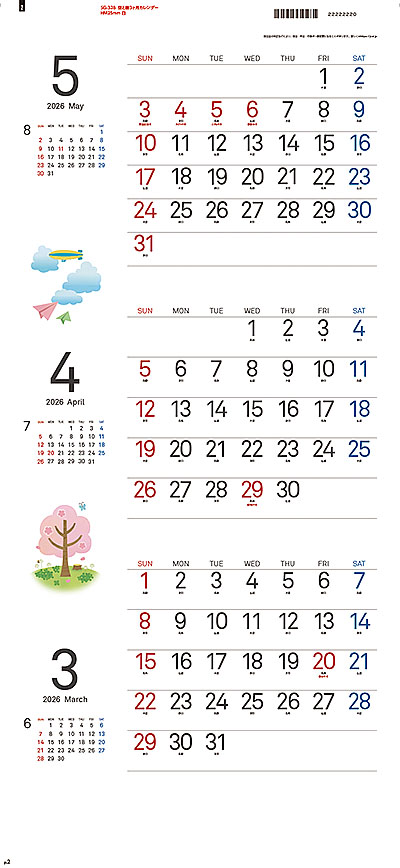 空と樹3ヶ月カレンダー [商品No.179] SG-328
