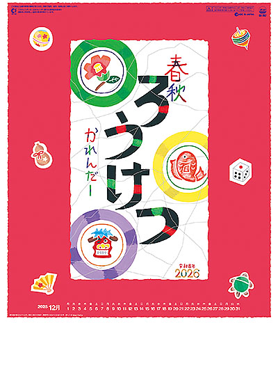 ろうけつ染めの素朴な趣。手作りのぬくもりが伝える季節の歳時記。ホットメルト製品です。味わい深いはり絵風の数字です。六曜・旧暦・主要行事入りです。